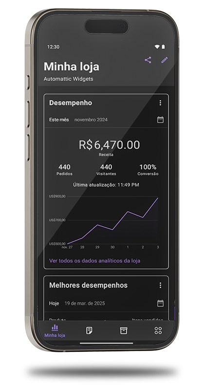Seja informado de cada venda, cadastre e edite seus produtos, acompanhe a evolução da sua loja e muito mais — tudo em um aplicativo desenvolvido exclusivamente para você, lojista.
